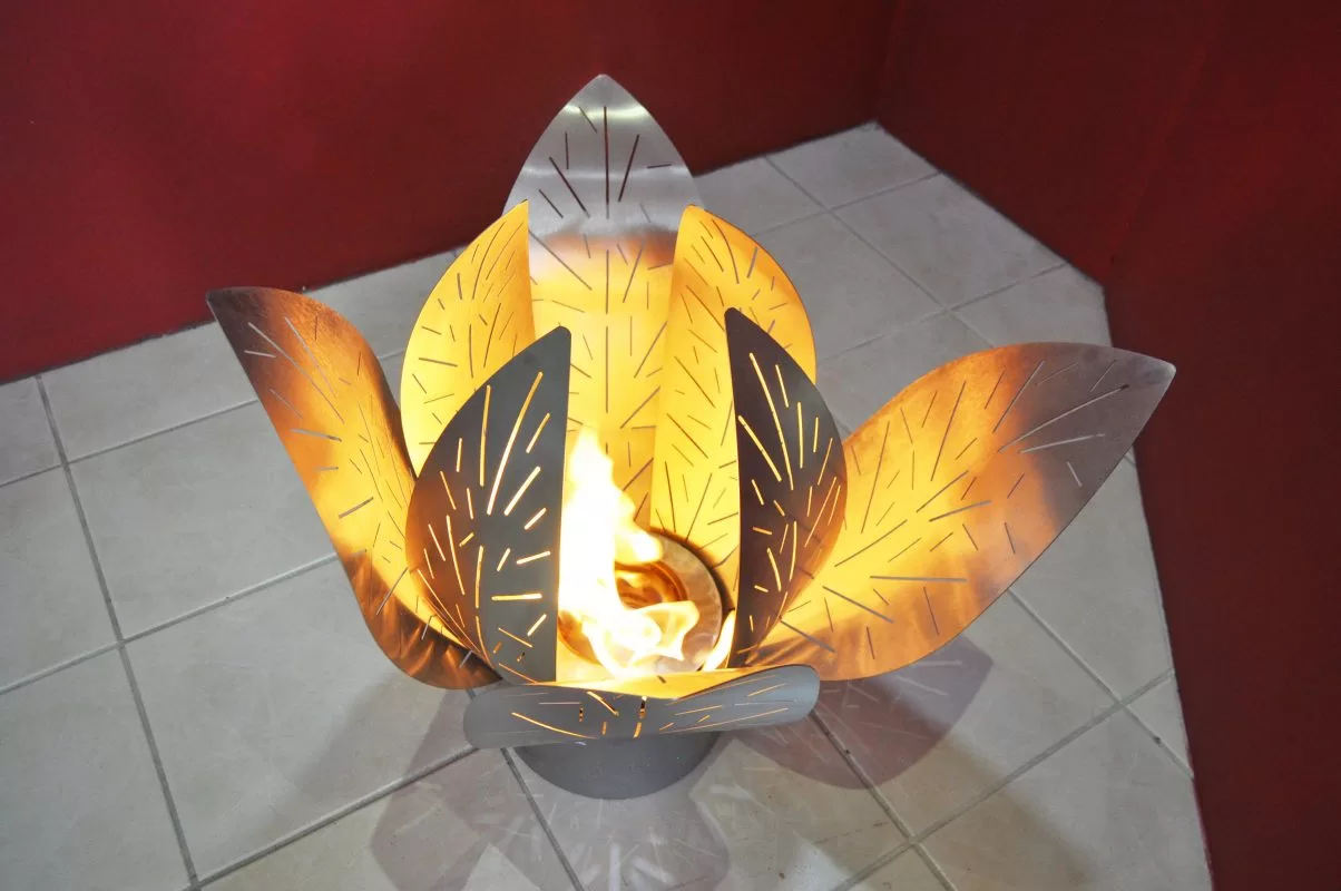 Queimador externo ou interno a álcool. Para ambientes internos espaçosos, jardins e ambientes externos.
